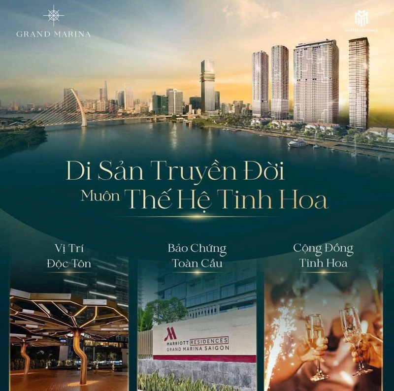 Grand Marina Saigon là dự án căn hộ hạng sang thuộc phân khúc hàng hiệu (branded residences) quy mô lớn nhất thế giới. Đây là lần đầu tiên có bất động sản hàng hiệu tại Việt Nam. Grand Marina Saigon là dự án được phát triển bởi Marriott International - tập đoàn hàng đầu thế giới trong phân khúc bất động sản hàng hiệu. Grand Marina Saigon mang thương hiệu JW Marriott – Tập đoàn khách sạn & nghỉ dưỡng lớn nhất thế giới. Grand Marina Saigon khẳng định biểu tượng vị thế quốc tế, giữ vững giá trị trường tồn vượt thời gian, thiết lập chuẩn mực quốc tế về chất lượng sản phẩm cùng chất lượng sống xứng tầm đẳng cấp.