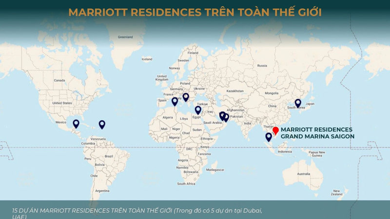 Marriott International chọn TP.HCM là nơi để phát triển dự án bất động sản lớn nhất thế giới của thương hiệu này. Dự án Grand Marina Saigon tọa lạc ở vị trí đắc địa tại trung tâm Quận 1 TP.HCM, cạnh sông Sài Gòn, quy mô dự án lên đến 10 hecta bao gồm 8 tòa nhà căn hộ cao cấp: Lake Tower, Sea Tower, Cove Tower – toà chữ V, Lagoon Tower, Ocean Tower, Bay Tower, Spring Tower và tòa Strait Tower do thương hiệu JW Marriott vận hành & quản lý. Ngoài ra còn có tòa Văn phòng The Sun Tower cao 60 tầng.