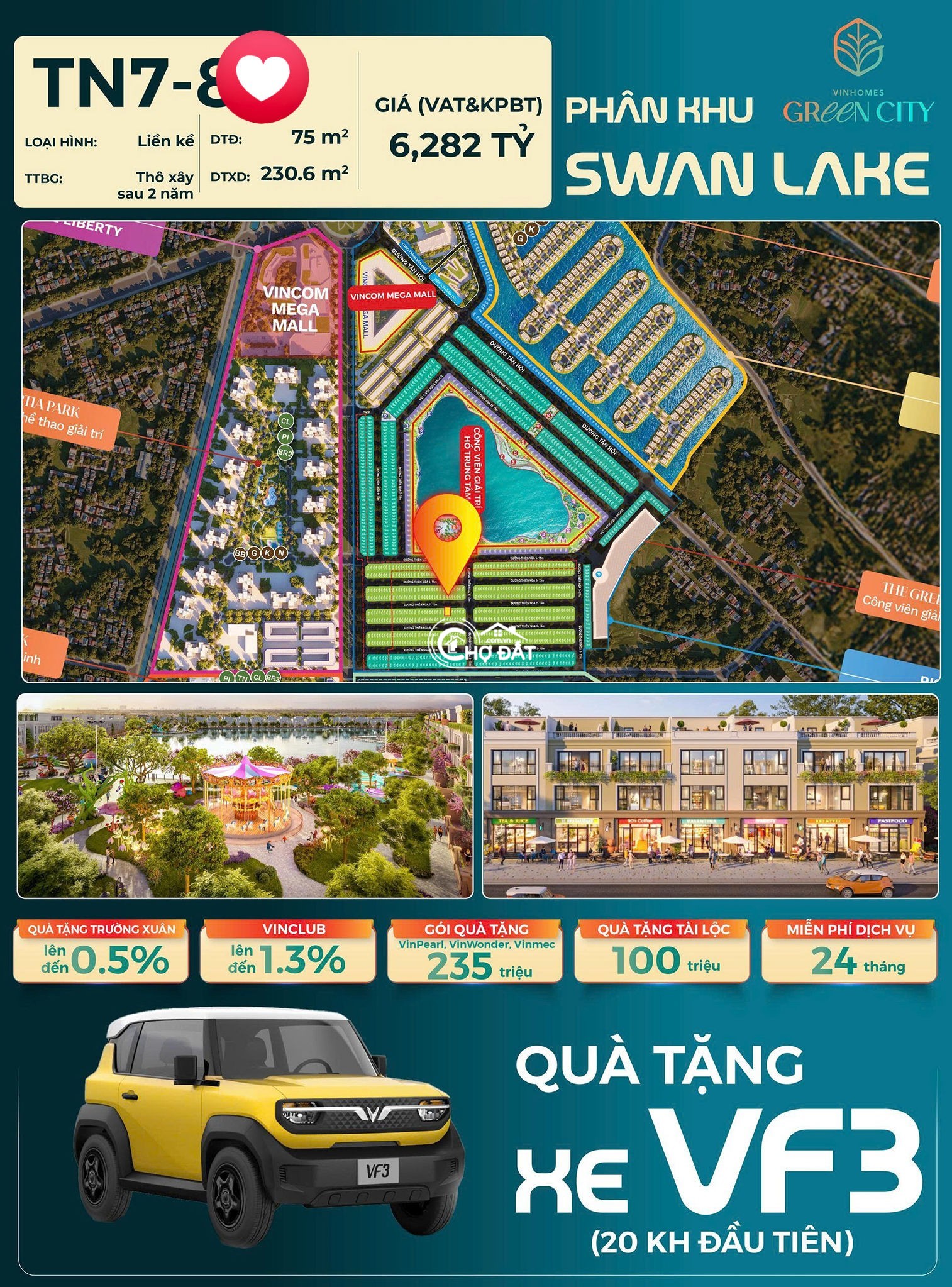 Mua nhà phố tặng xe Vinfast phân khu Swan Lake Vinhomes Green City LA