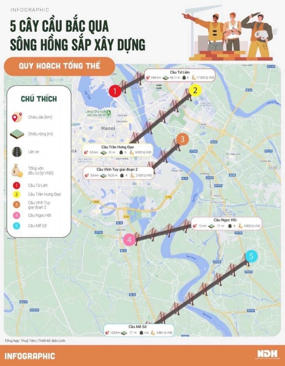 5 cây cầu bắc qua sông Hồng, giúp rút ngắn thời gian di chuyển từ Gia Lâm sang các quận nội thành như Hoàn Kiếm, Hai Bà Trưng, Thanh Xuân Hướng phát triển của HN dần dần sẽ phải giãn dân ra ngoài nội đô, giảm thiểu áp lực ...